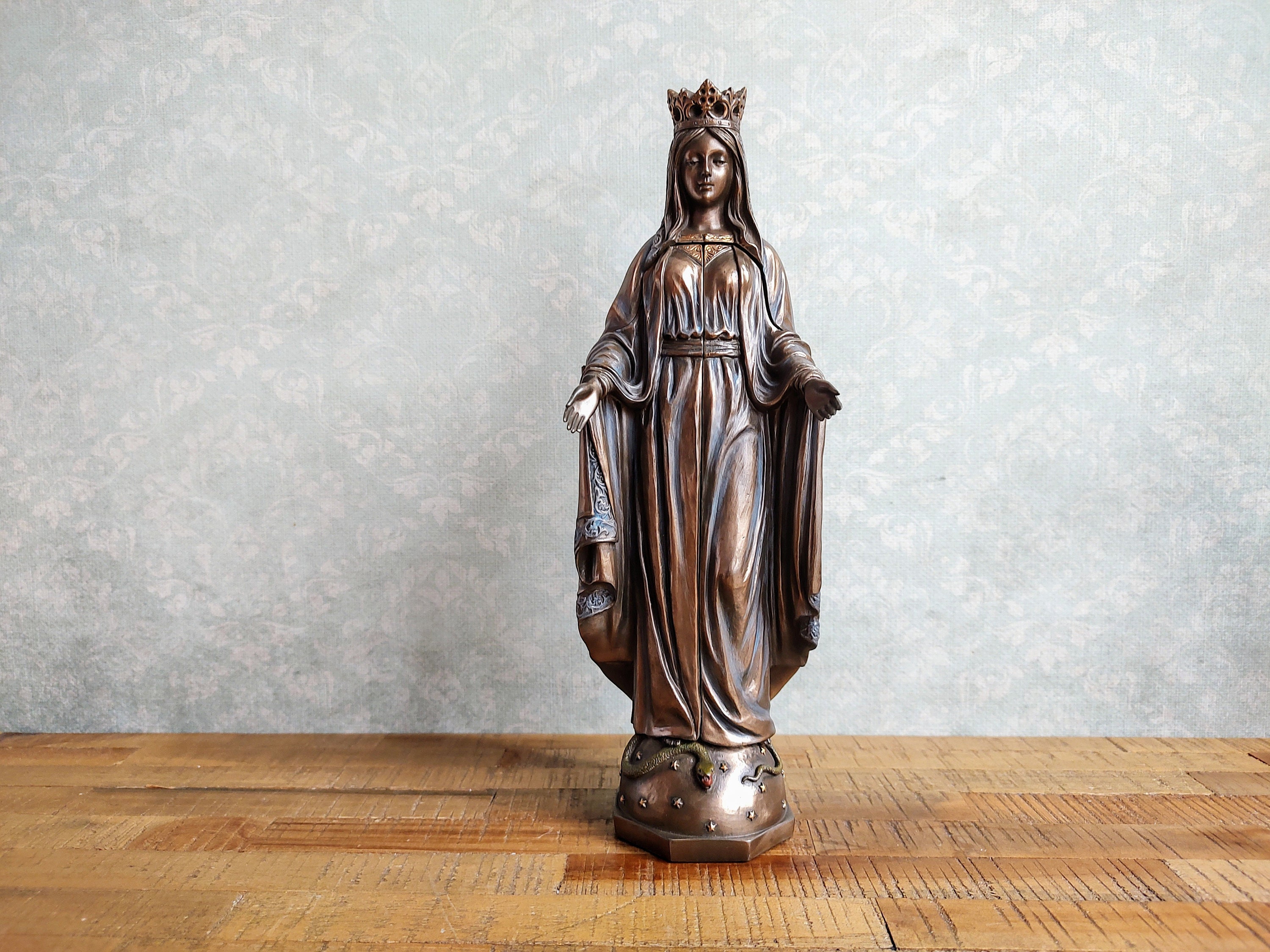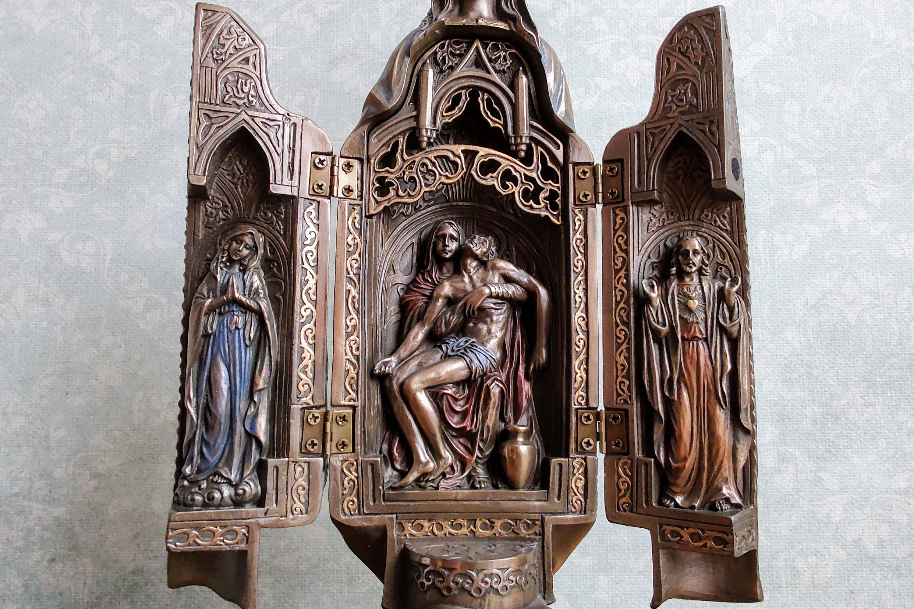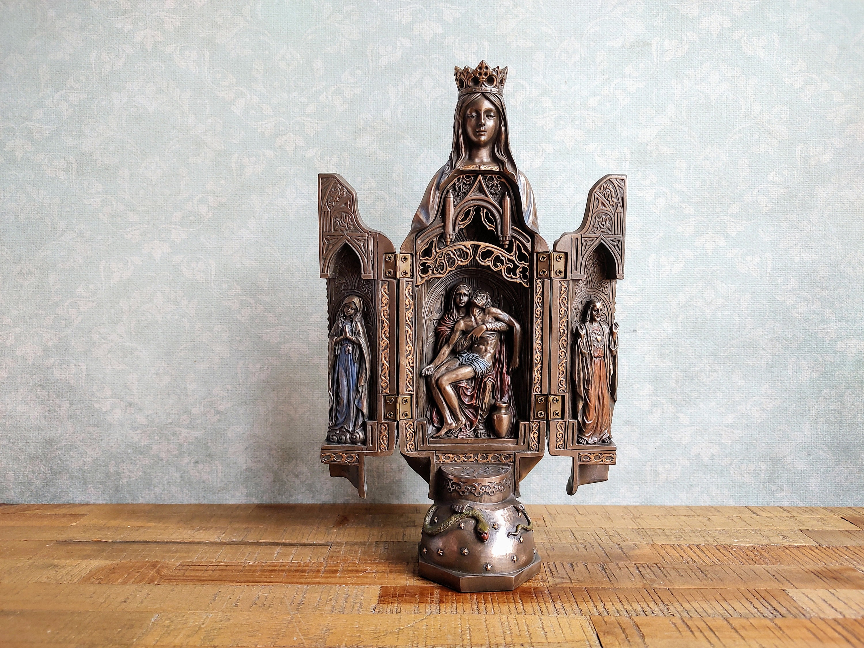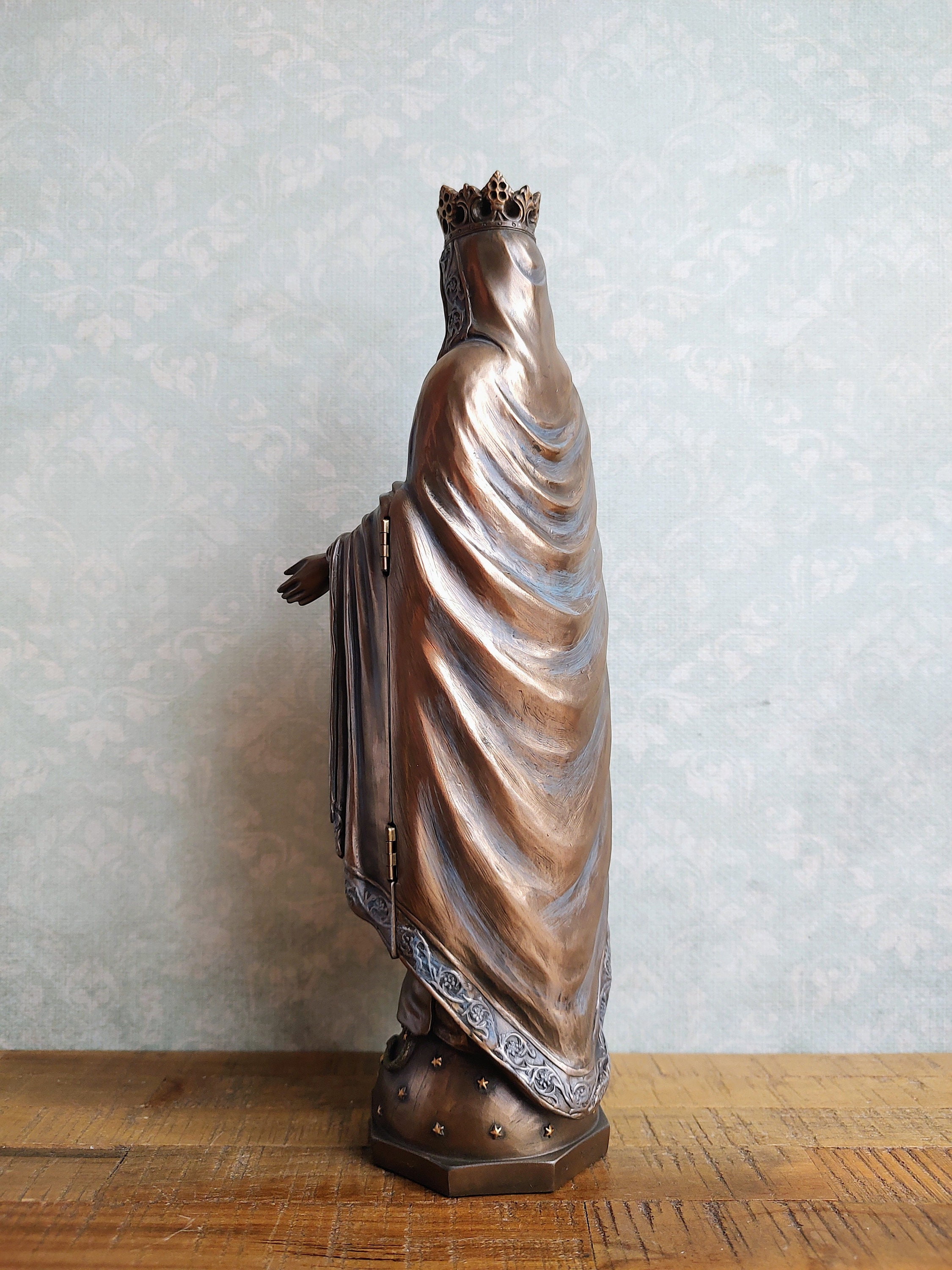 The finish gives it an antique, bronze-like look that radiates reverence and beauty.