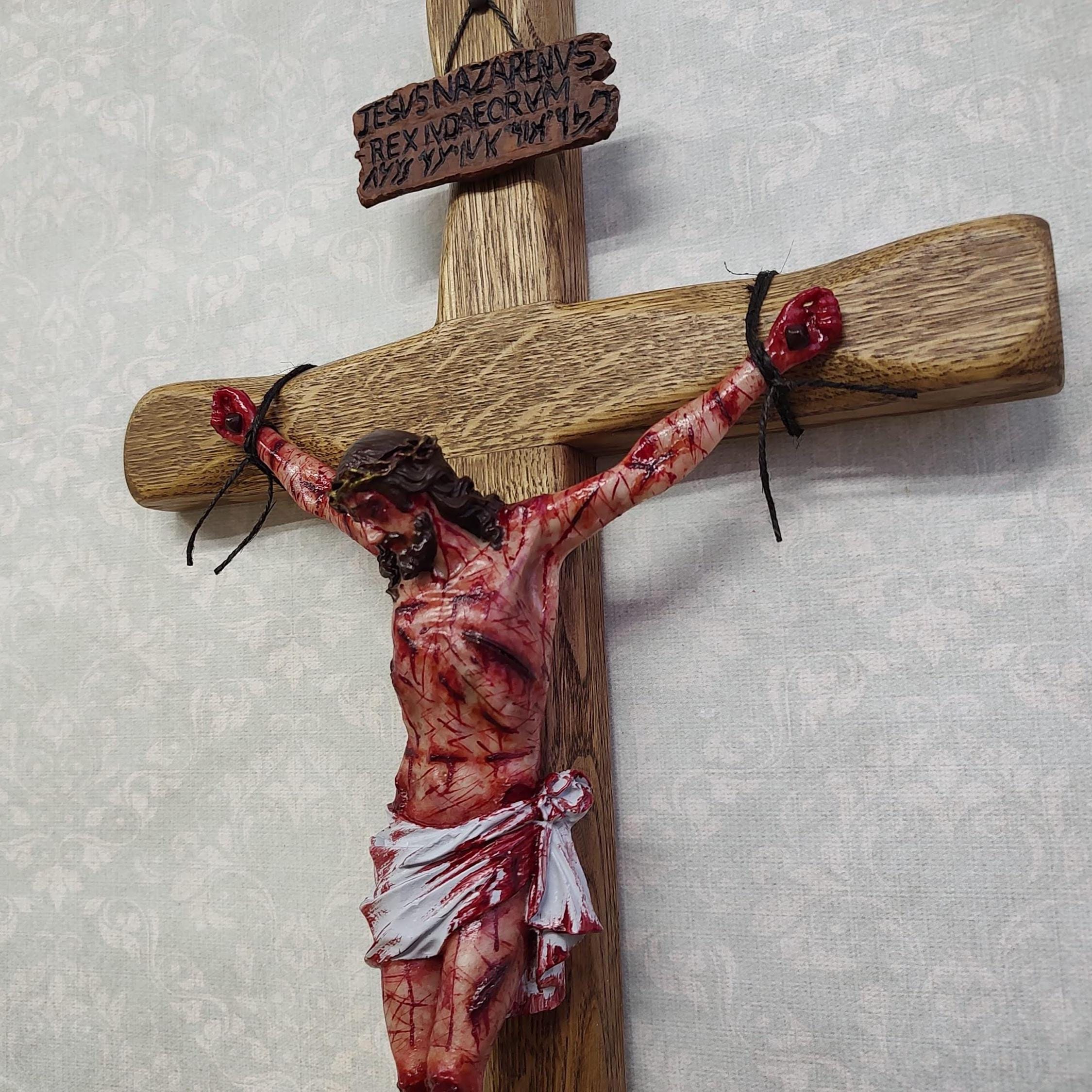 * Featuring an INRI plate with inscriptions in both Latin and Hebrew, it bears the profound phrase 'Jesus Nazarene King of the Jews.'