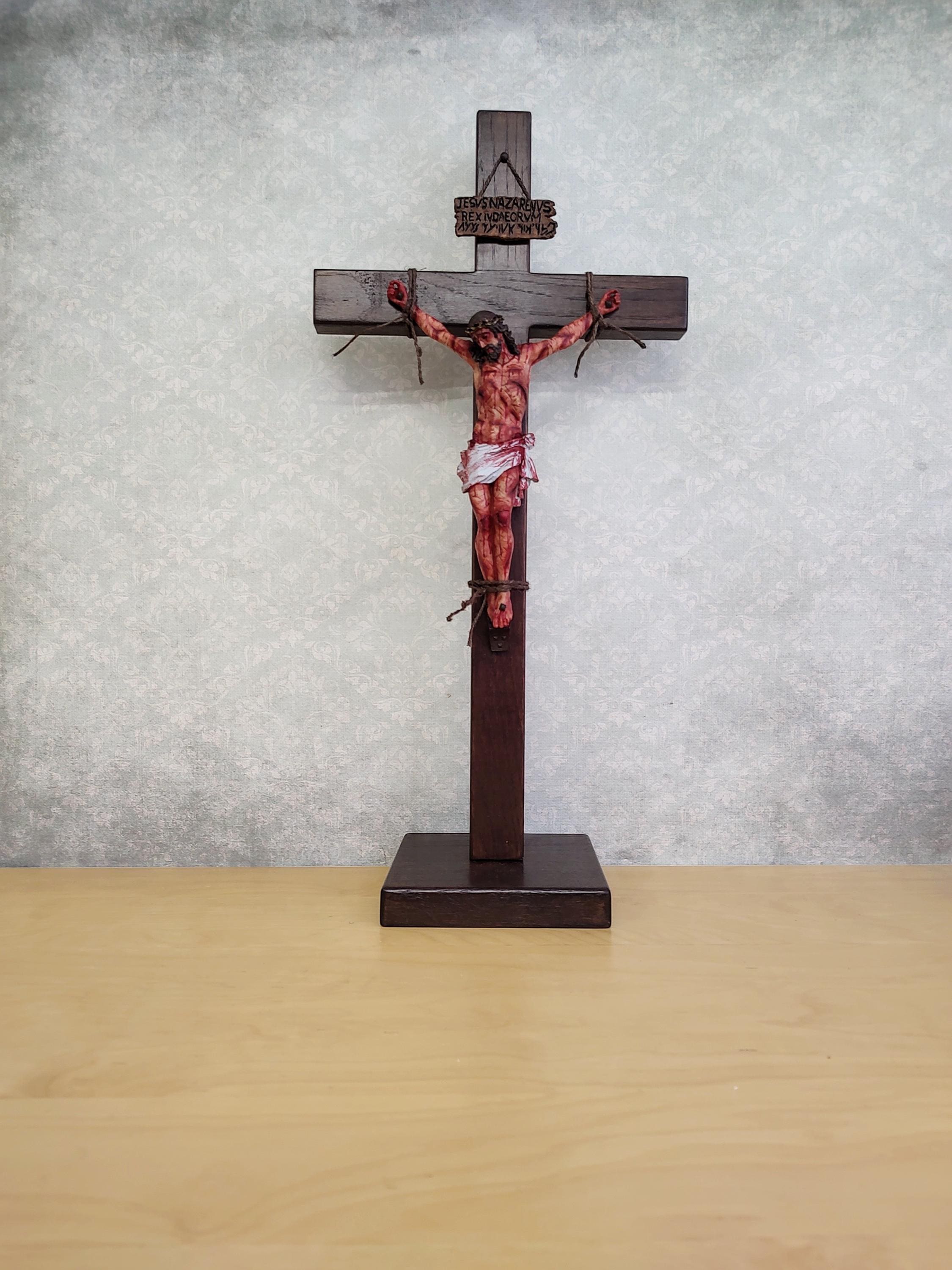 Features an INRI plaque inscribed in both Latin and Hebrew, bearing the sacred words: “Jesus of Nazareth, King of the Jews”