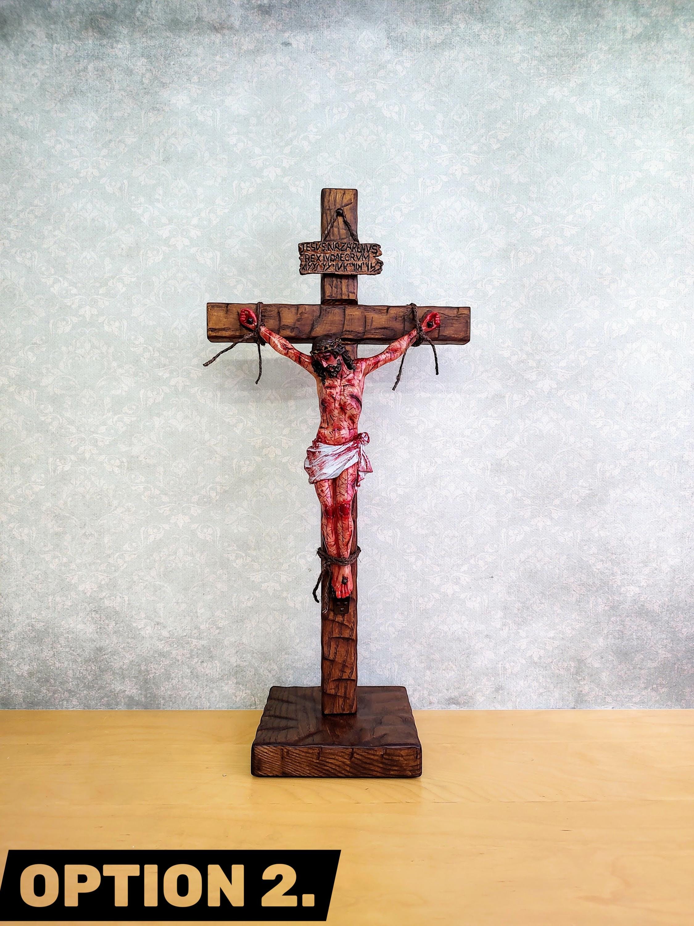 2. CRUCIFIX + STAND 20.8" (52 cm) – brown, with a hole for hanging on the wall + stand without holes