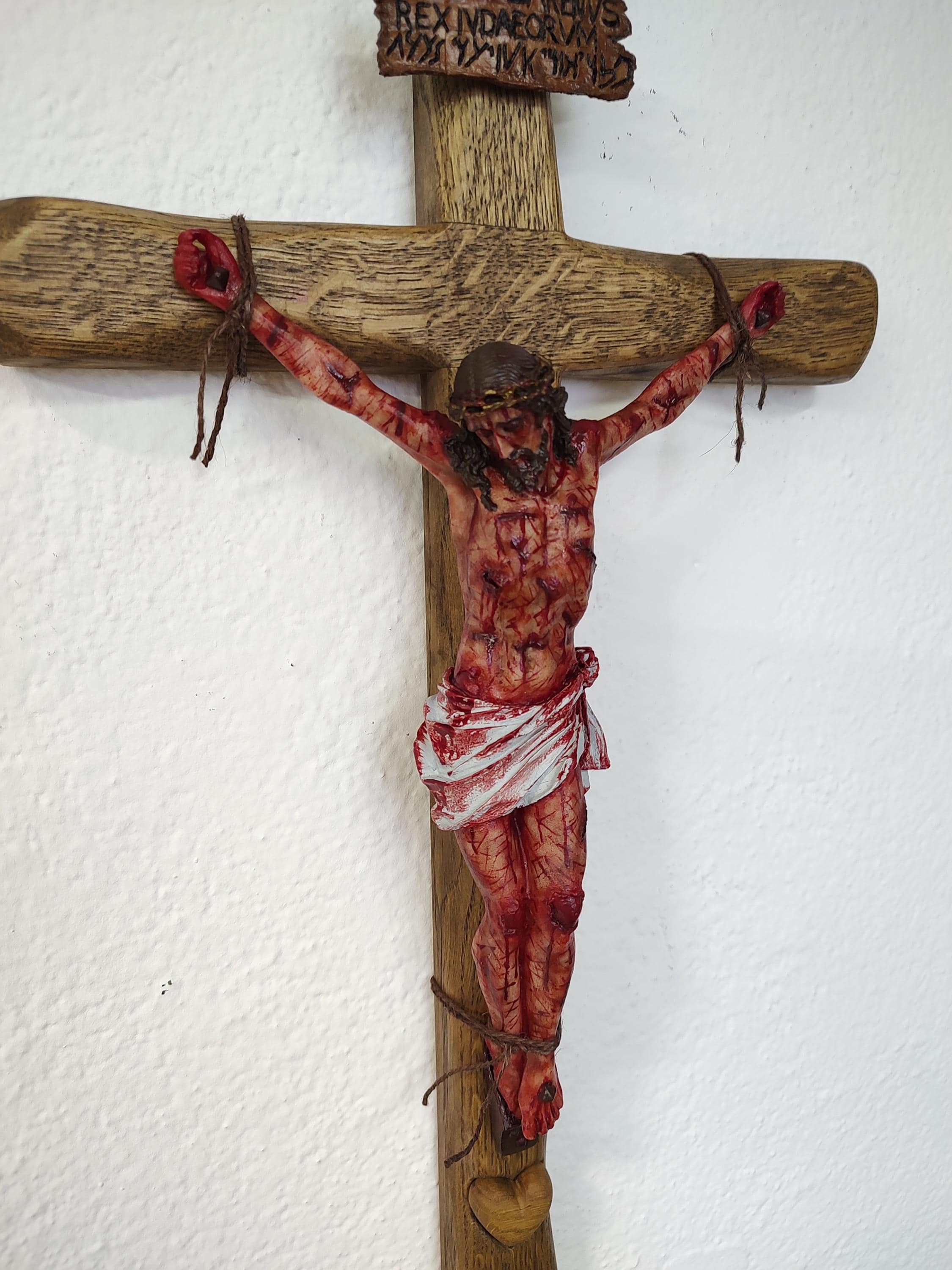 The Passion Crucifix of Jesus – 100% HANDMADE – an extraordinary devotional piece crafted from solid oak wood – 3D carved heart