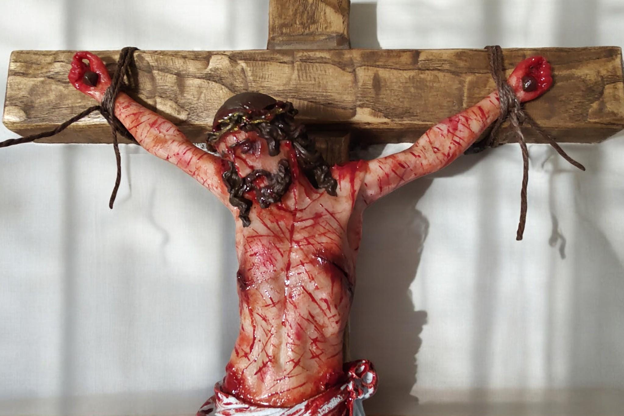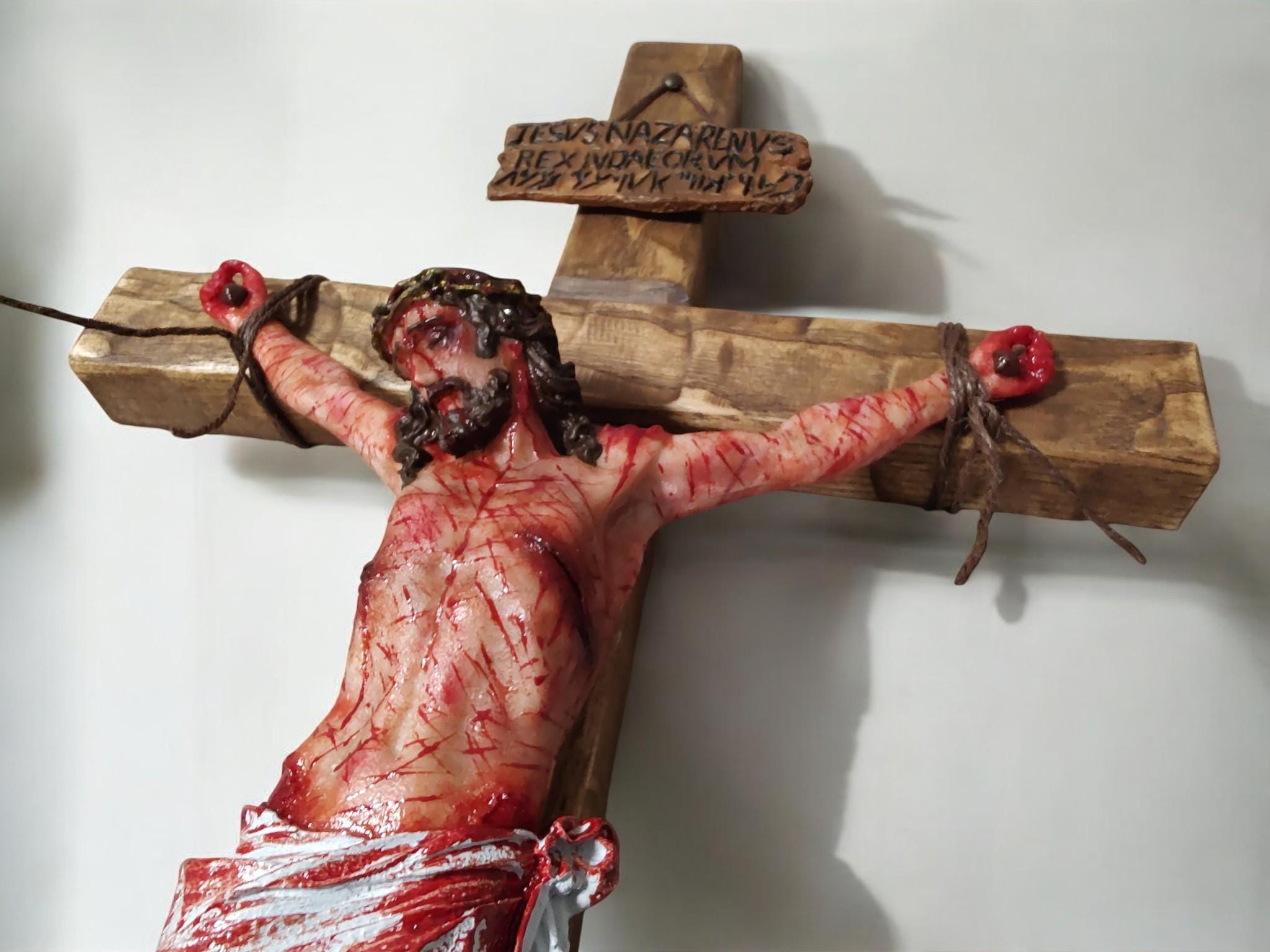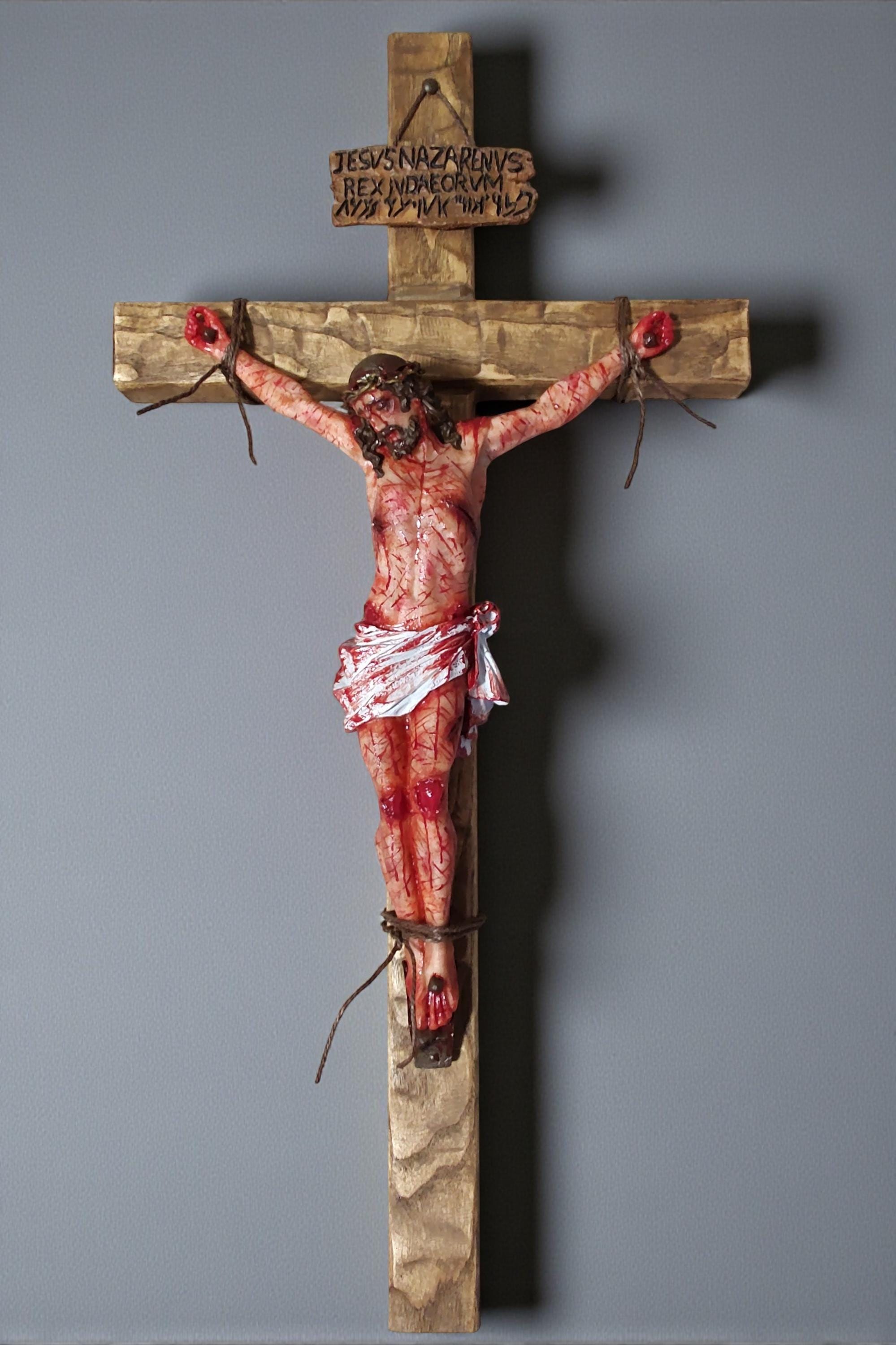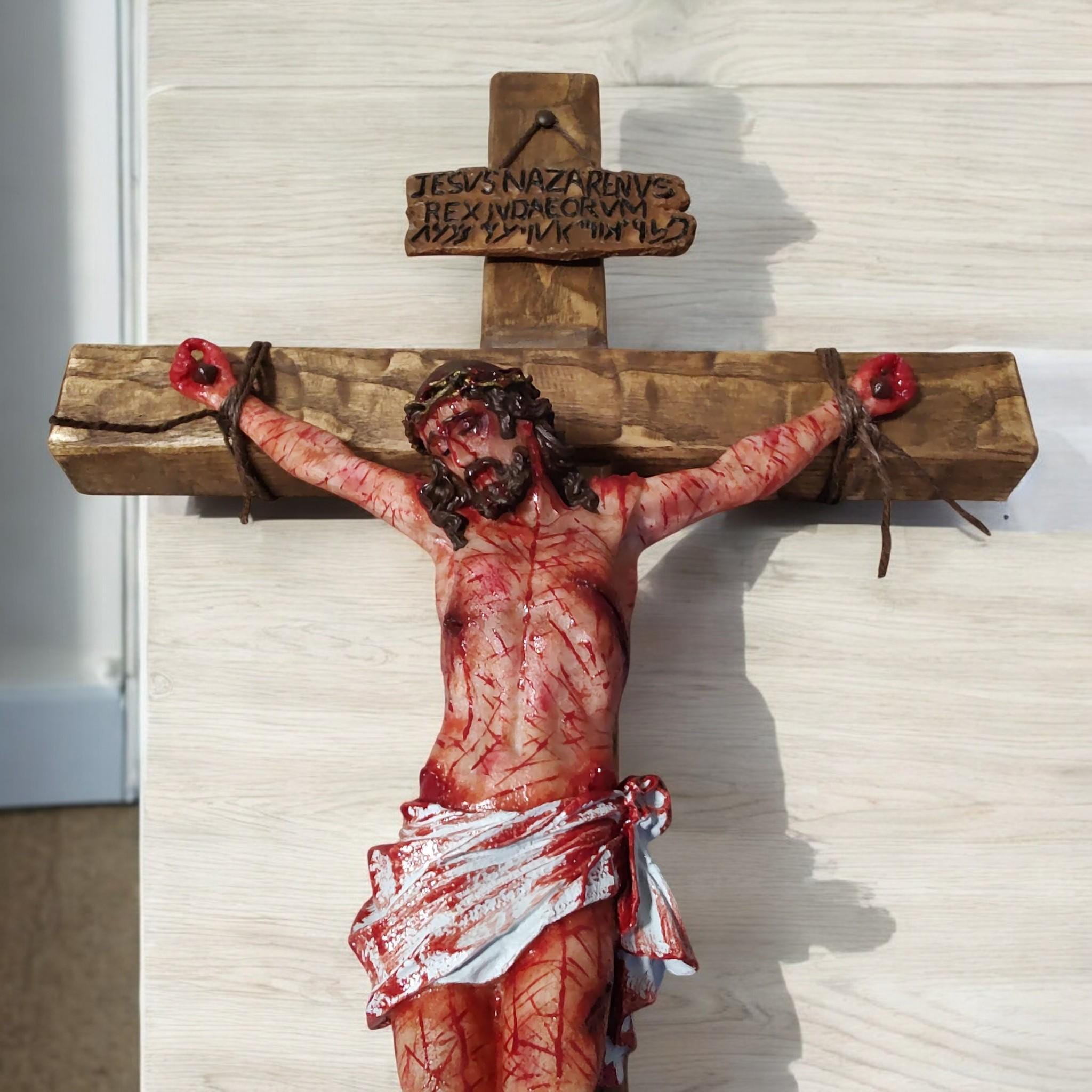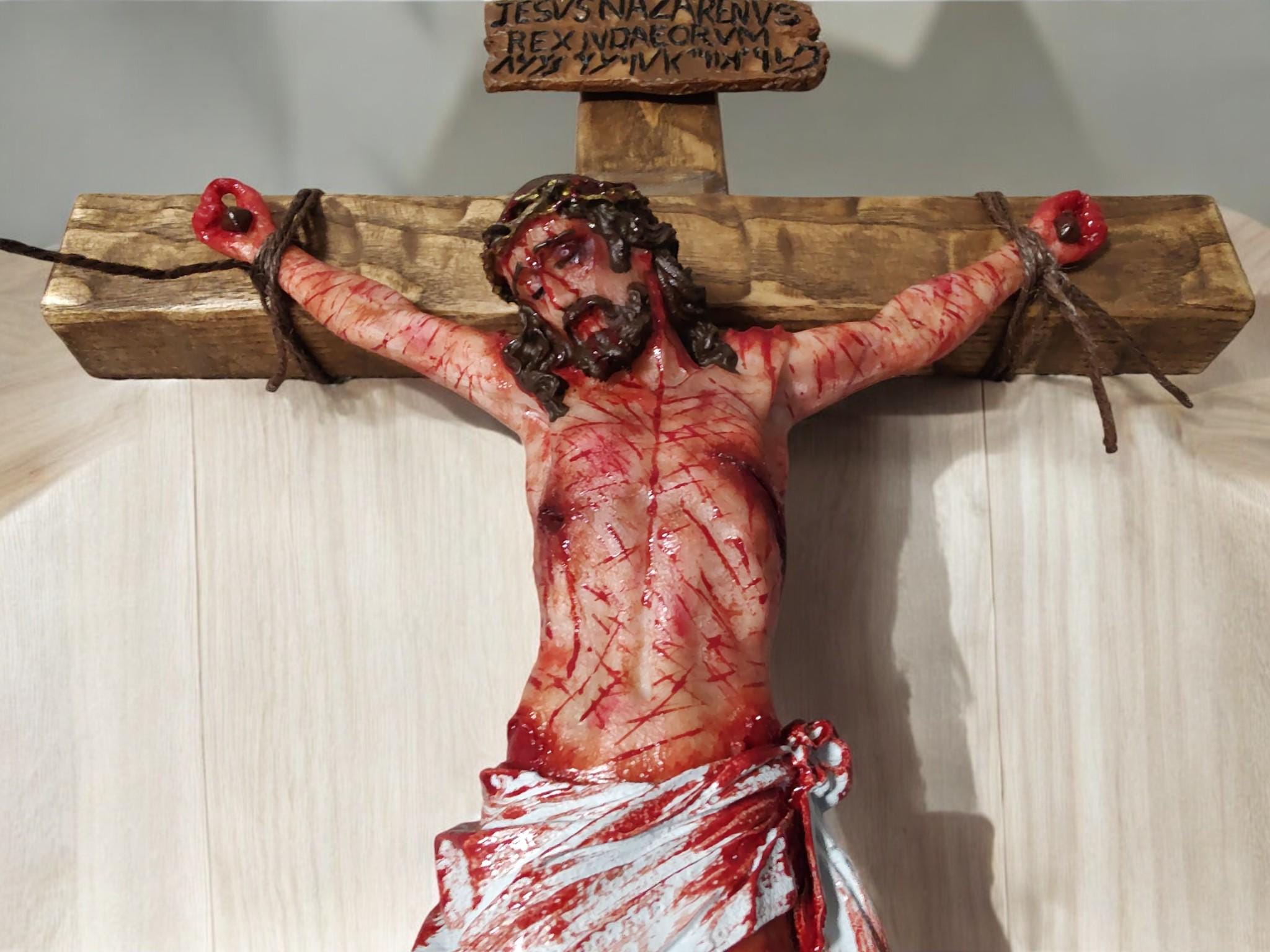 Passion Crucifix 19.7 in/ 50cm- Classic Cross Catholic Interior Decor - Realistic Crucifix Jesus - Hand Carved Cross Walnut Color