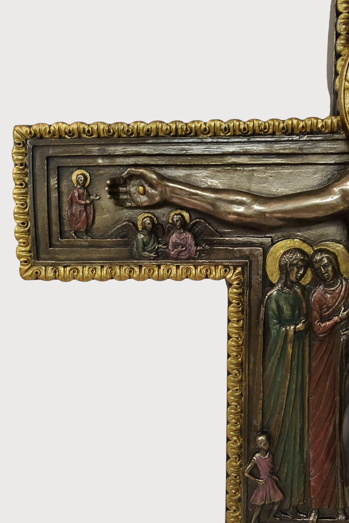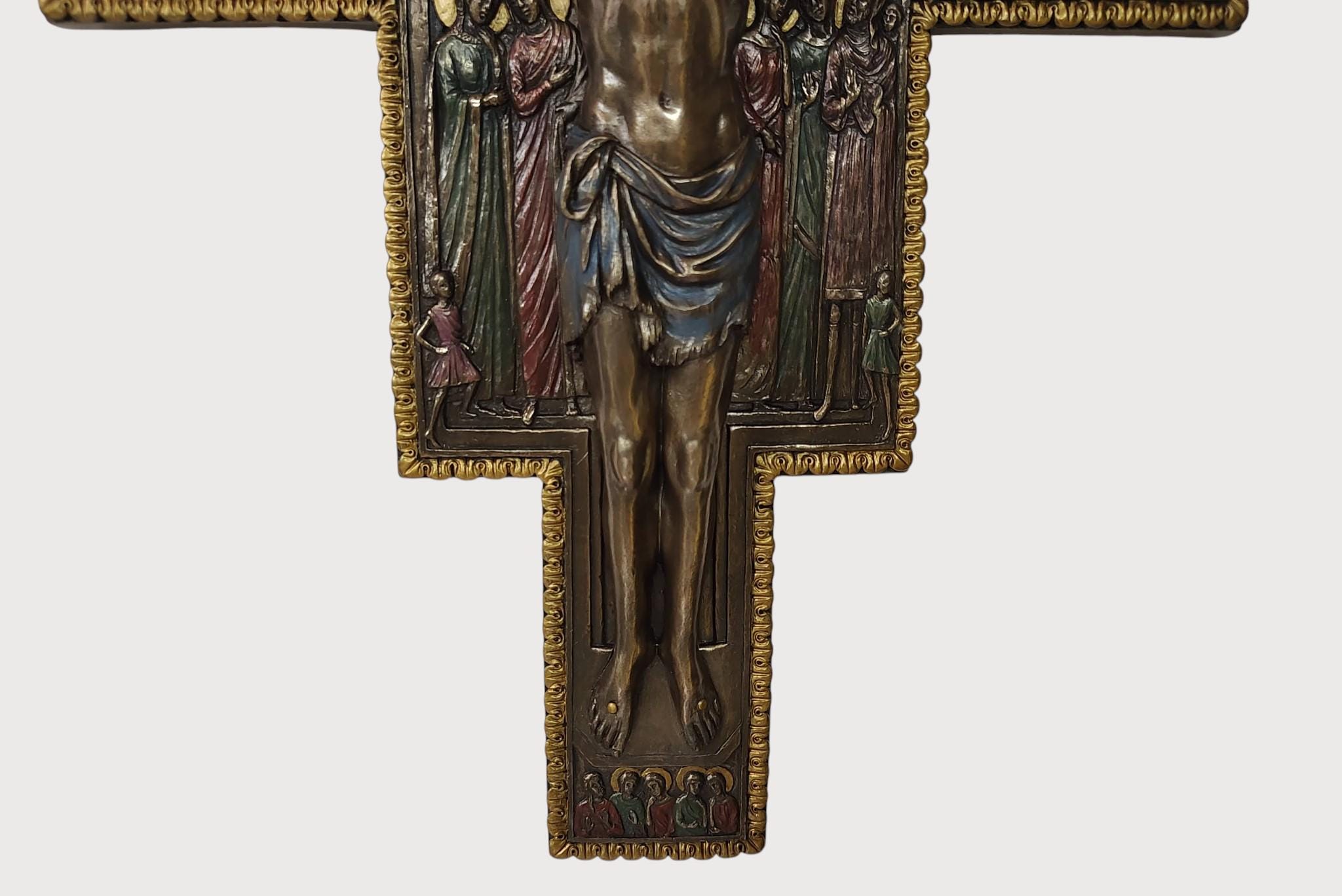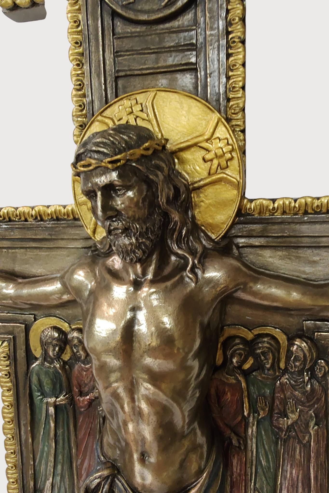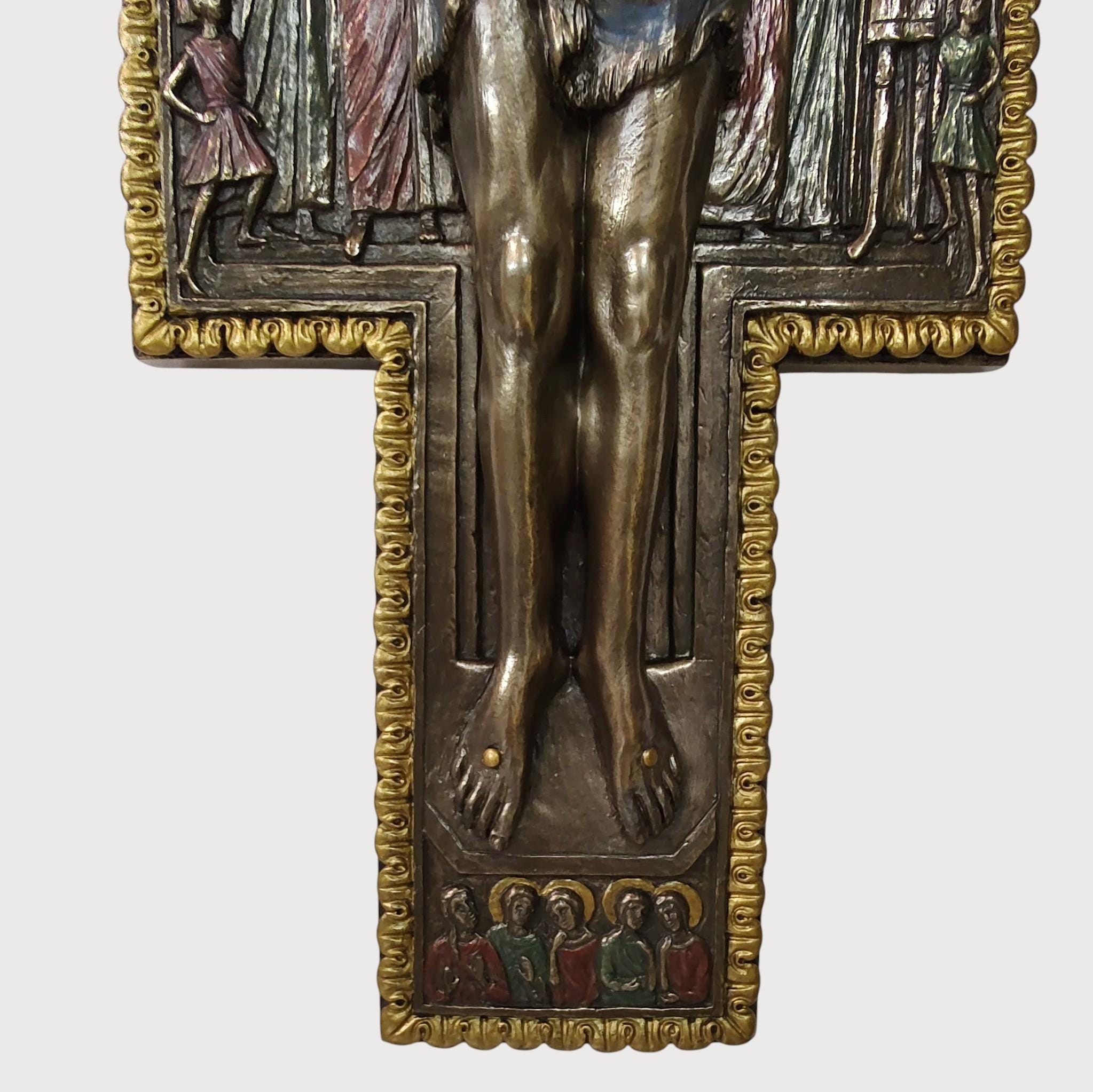 Beautiful crucifix finished with a rich bronze coating. This detailed 40 cm (15.7") cross features intricate religious imagery and makes a meaningful spiritual home décor piece or gift. Size: 40×28 cm (15.7"×11"), weight 1.15 kg (2.54 lbs).
